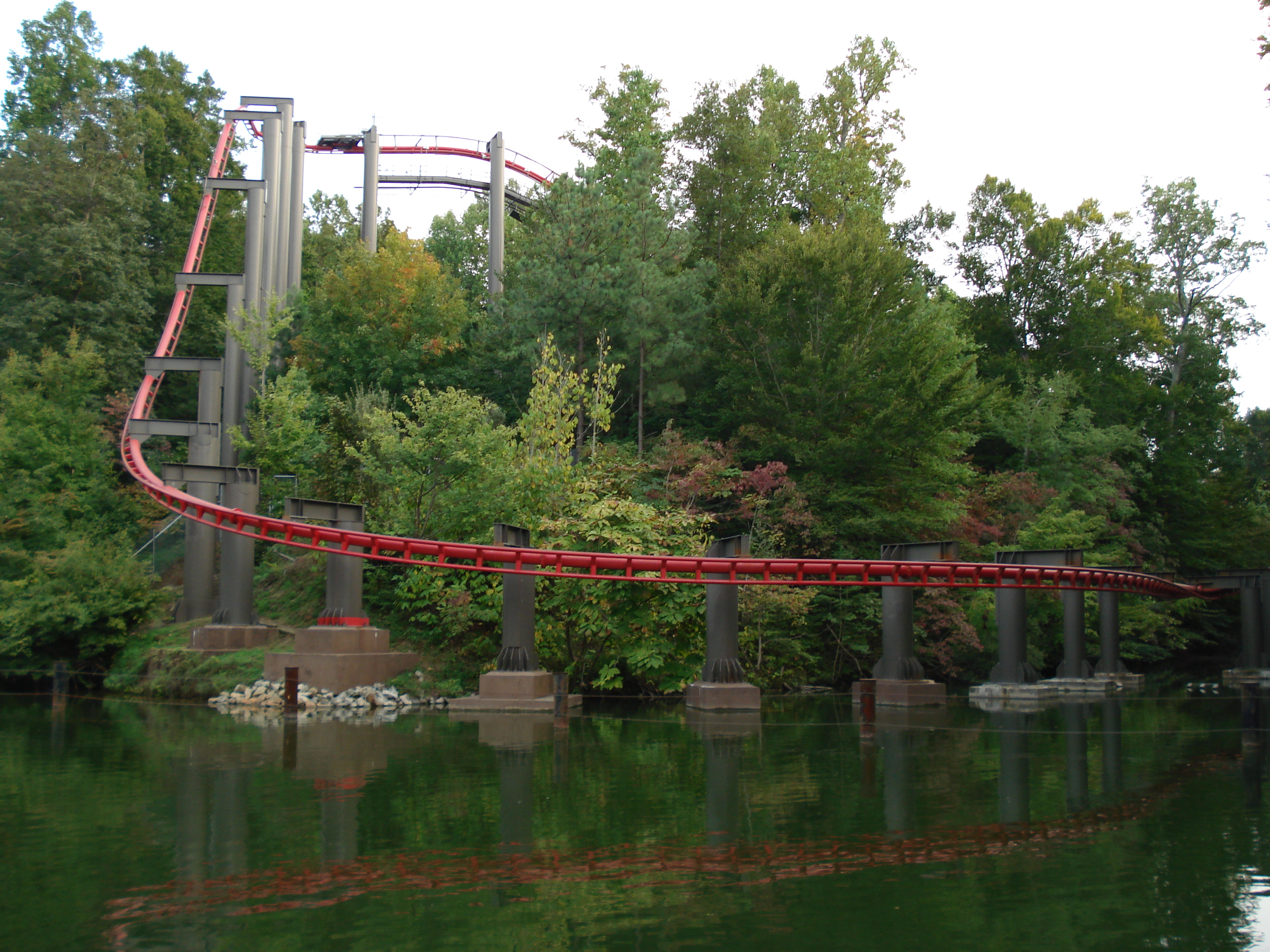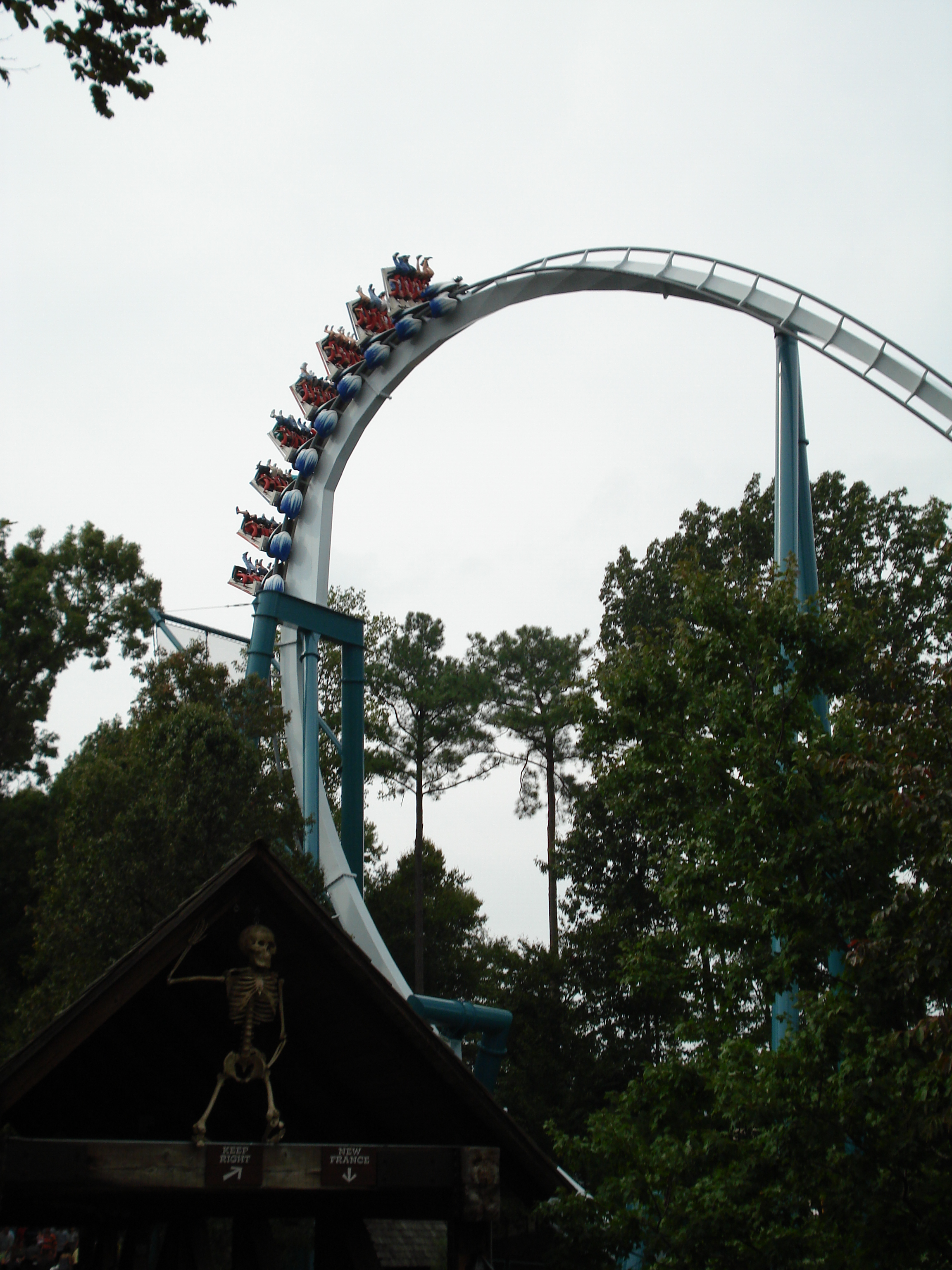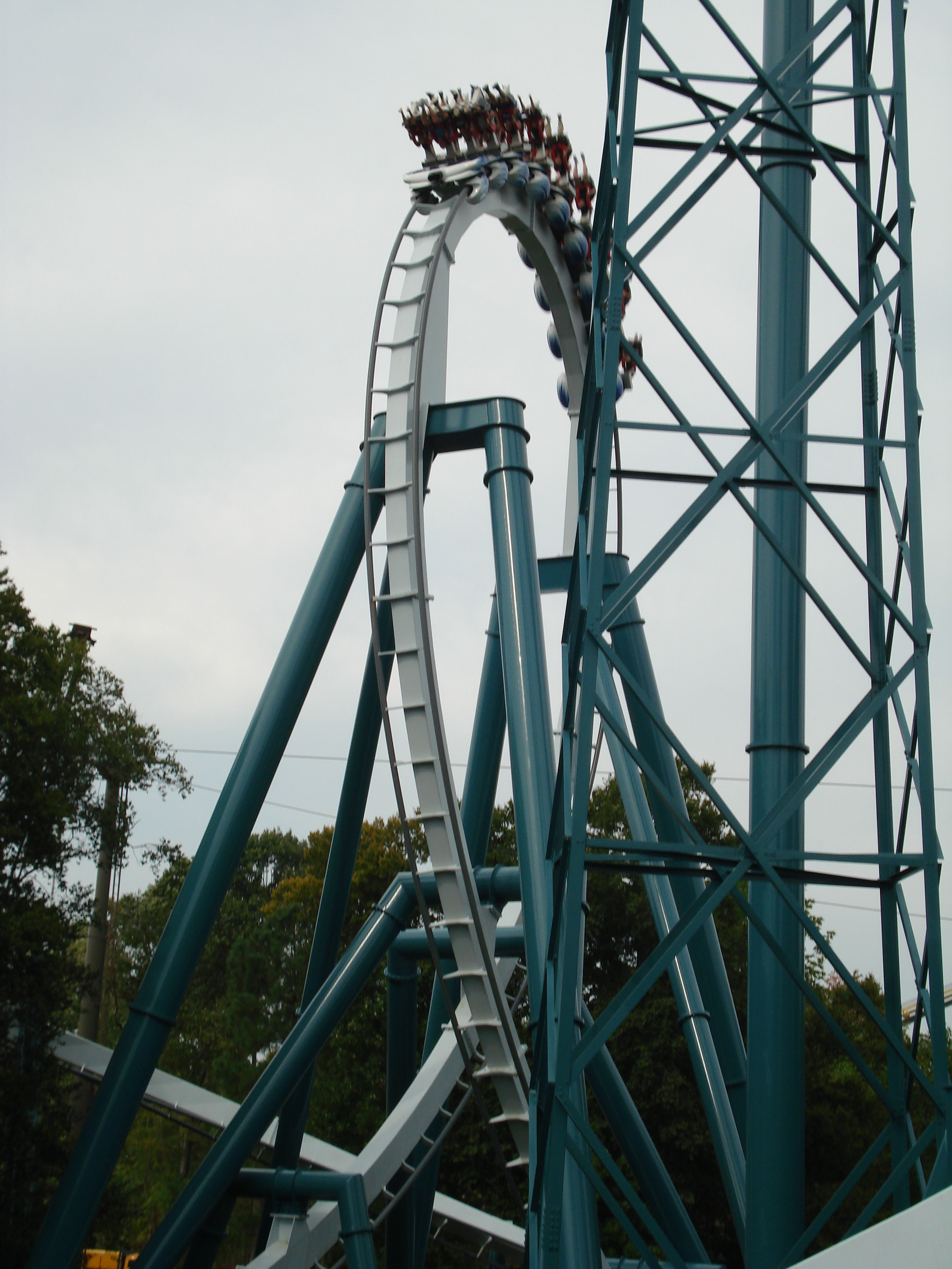 This type of coaster is a “terrain” coaster, meaning that it was specifically built to follow the terrain of the area it is in thus also making it a Custom Looping model from this company. The coaster is actually very smooth given that most coasters from Arrow Dynamics are a bit rough.I would say this coaster is completely re-ride able as I did at-least ten time during my three-day visits in 2006 and 2010. Here are the stats: The coaster is 3,240 feet long, 140 feet high, has a drop of approximately 114 feet, two inversions, a top speed of about 60 mph, and a total ride time of about two minutes and ten seconds long.