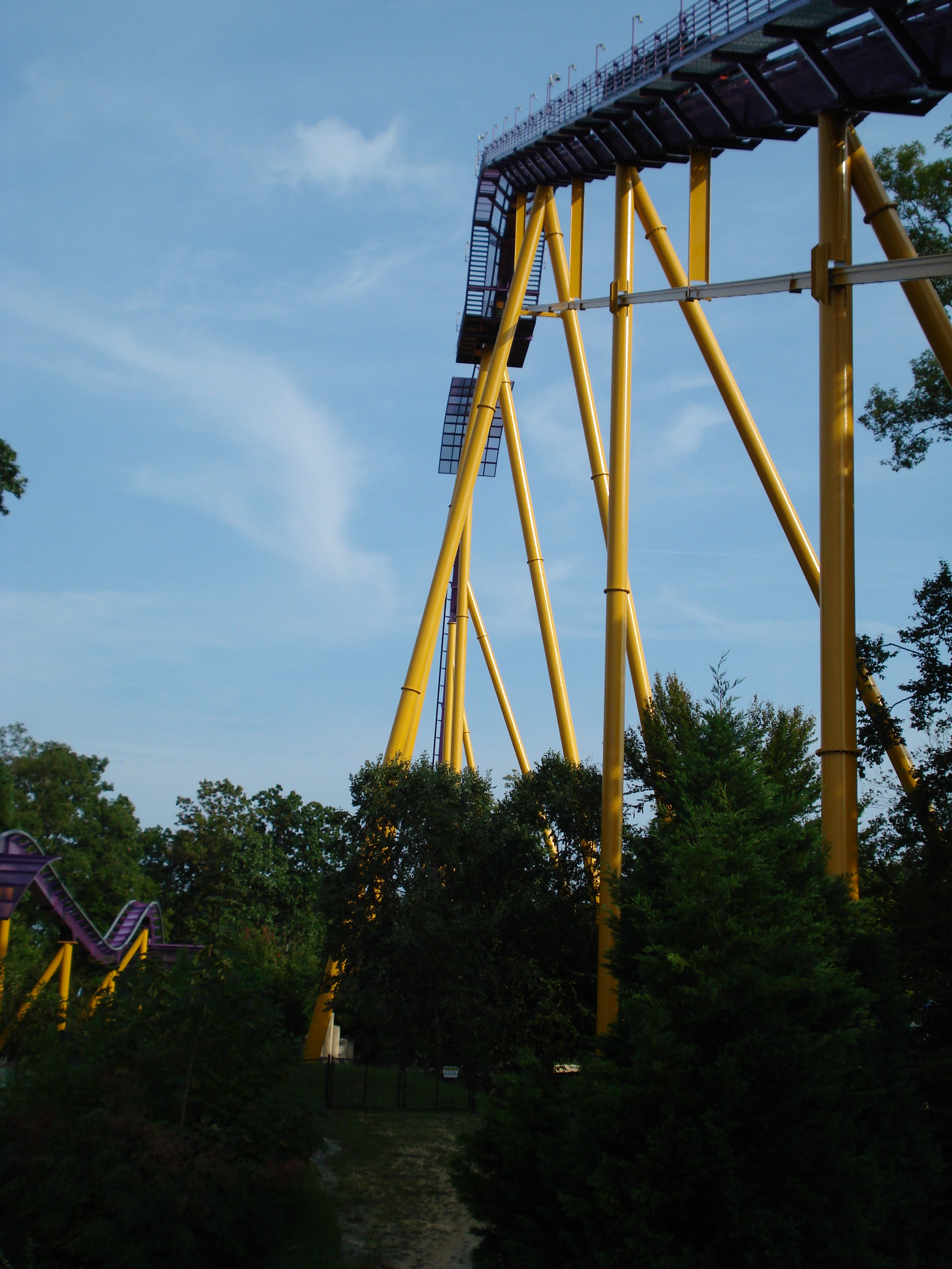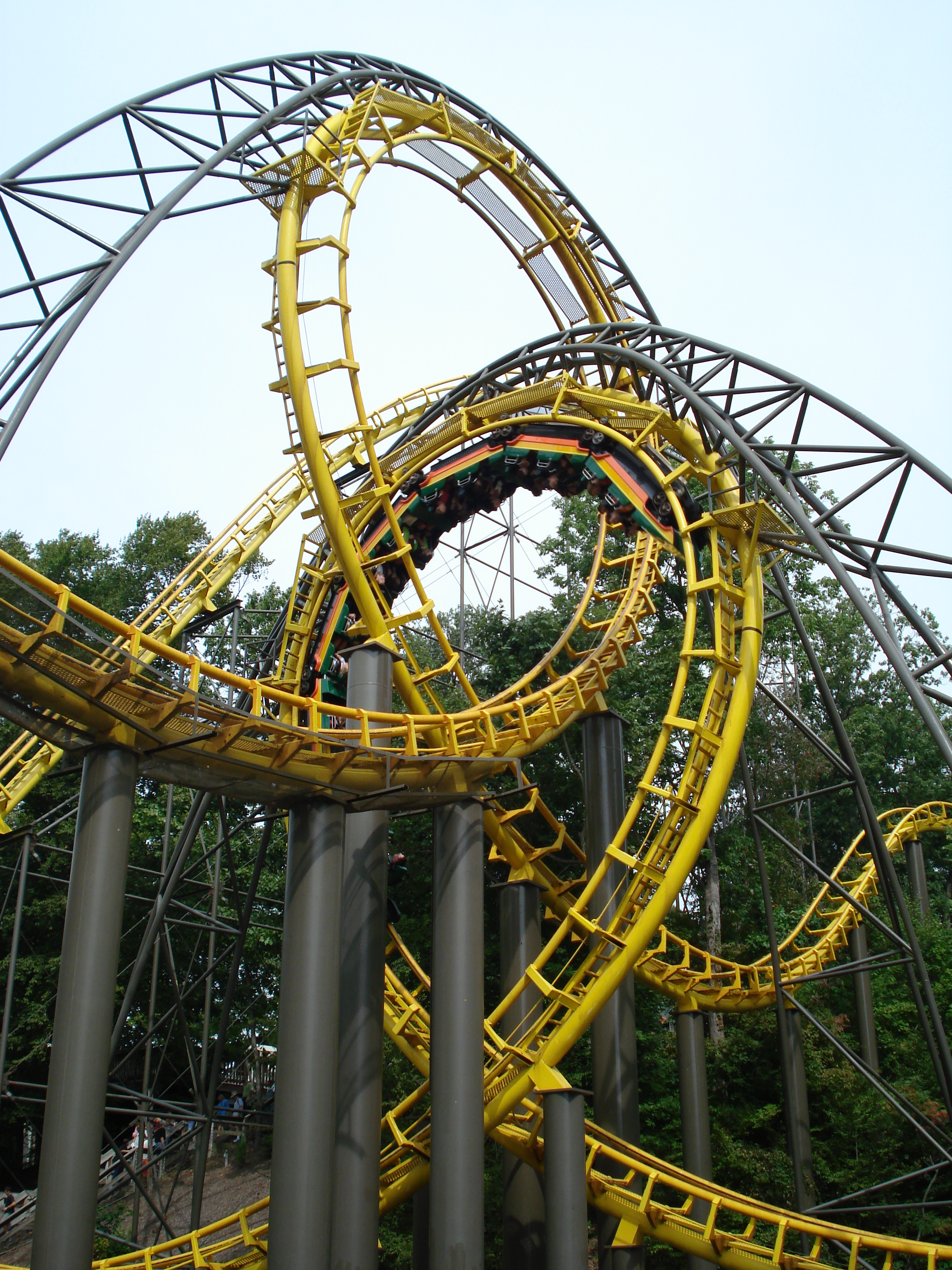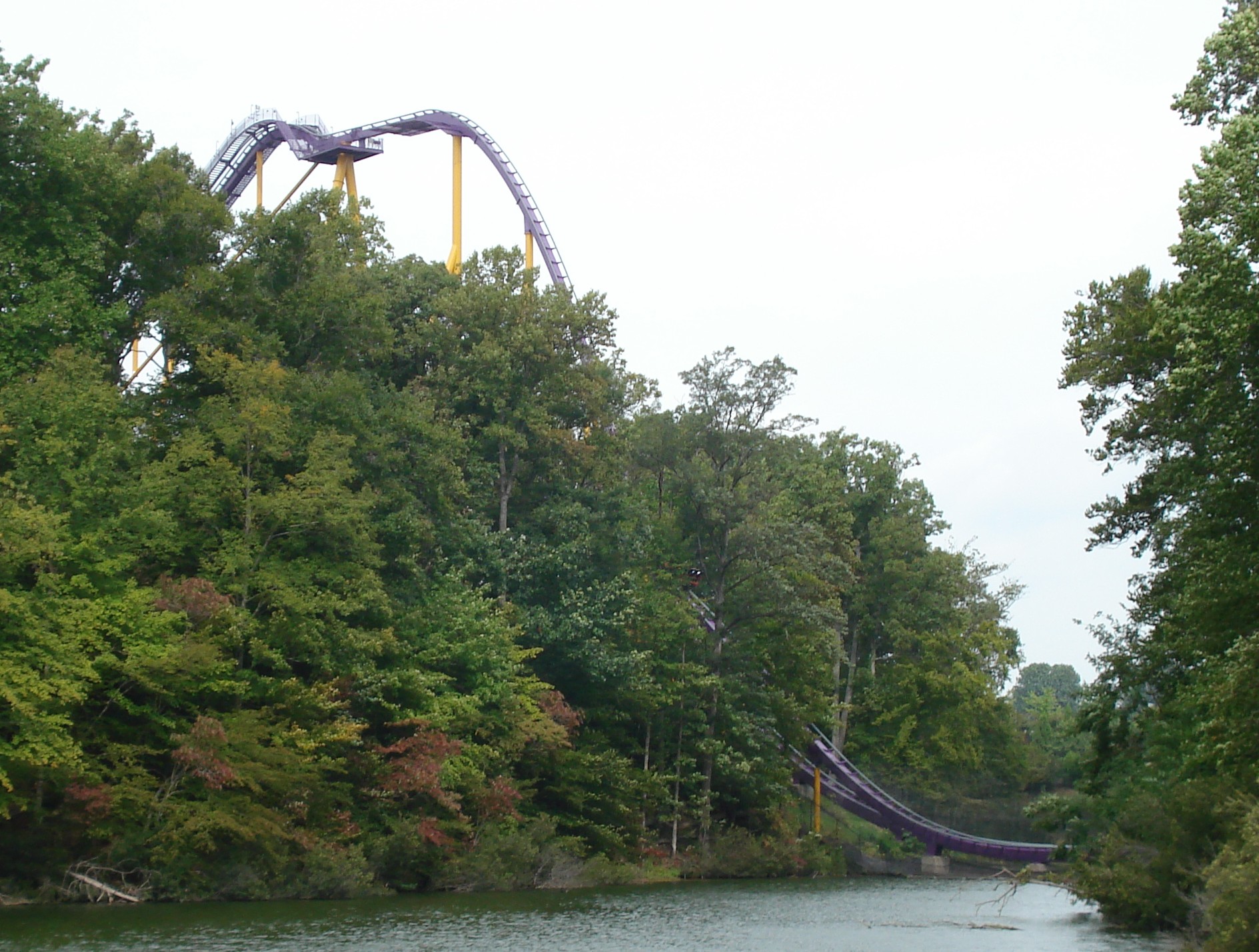 This type of coaster is a “terrain” coaster, meaning that it was specifically built to follow the terrain of the area it is in thus also making it a Custom Looping model from this company. The coaster is actually very smooth given that most coasters from Arrow Dynamics are a bit rough.I would say this coaster is completely re-ride able as I did at-least ten time during my three-day visits in 2006 and 2010. Here are the stats: The coaster is 3,240 feet long, 140 feet high, has a drop of approximately 114 feet, two inversions, a top speed of about 60 mph, and a total ride time of about two minutes and ten seconds long.