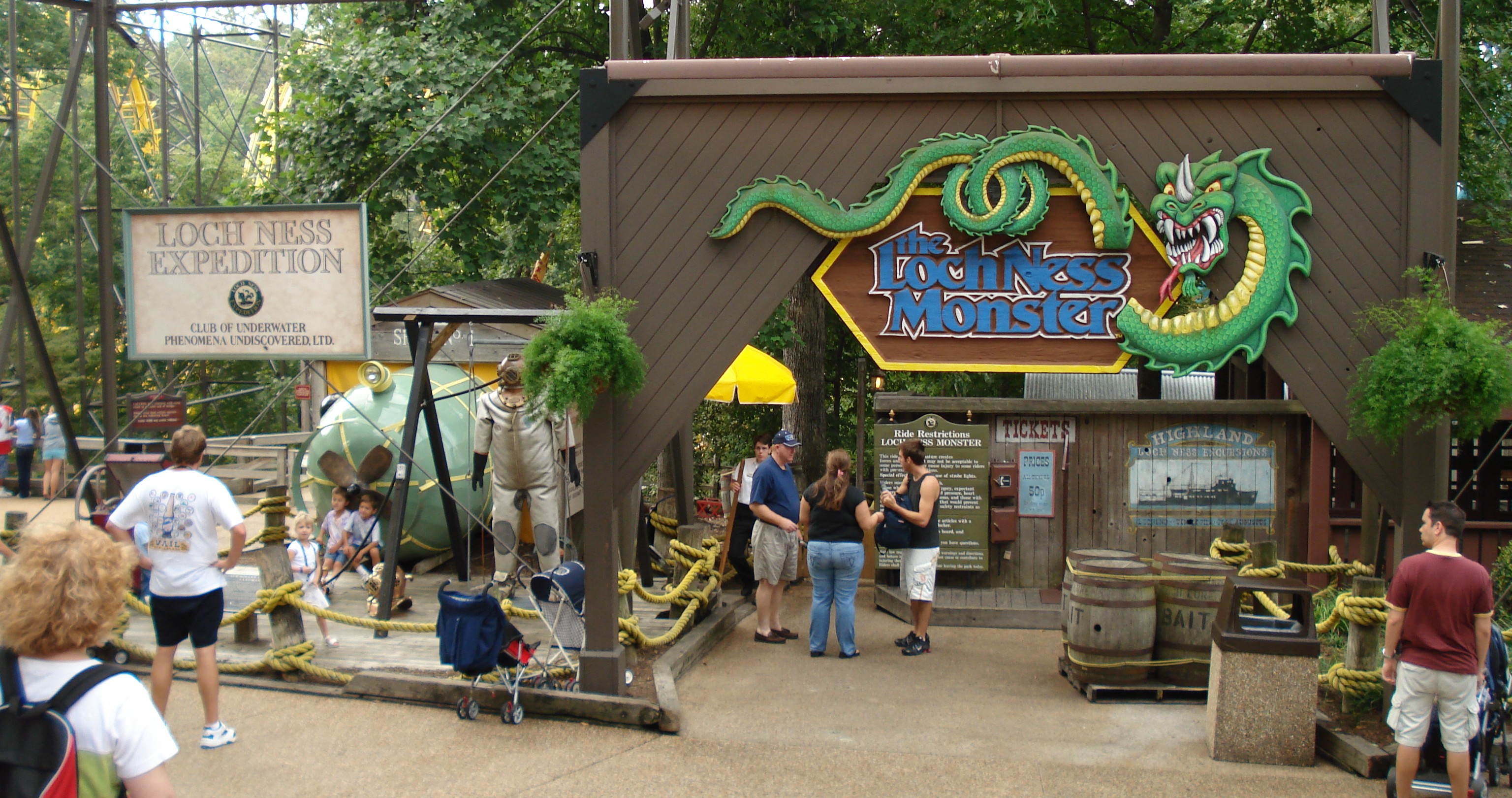 The Loch Ness Monster, or “Nessie” as some enthusiasts call her, was built by Arrow Dynamics and designed by the famous Ron Toomer. Both are pioneers in the roller coaster industry. This coaster opened on May 20, 1978 as the worlds tallest at 140 feet tall and the worlds first coaster to have interlocking loops. The only other one to have this feature was the Orient Express at Worlds of Fun near Kansas City, Missouri, USA. That coaster was later removed in favor of a new inverted roller coaster called the Patriot.