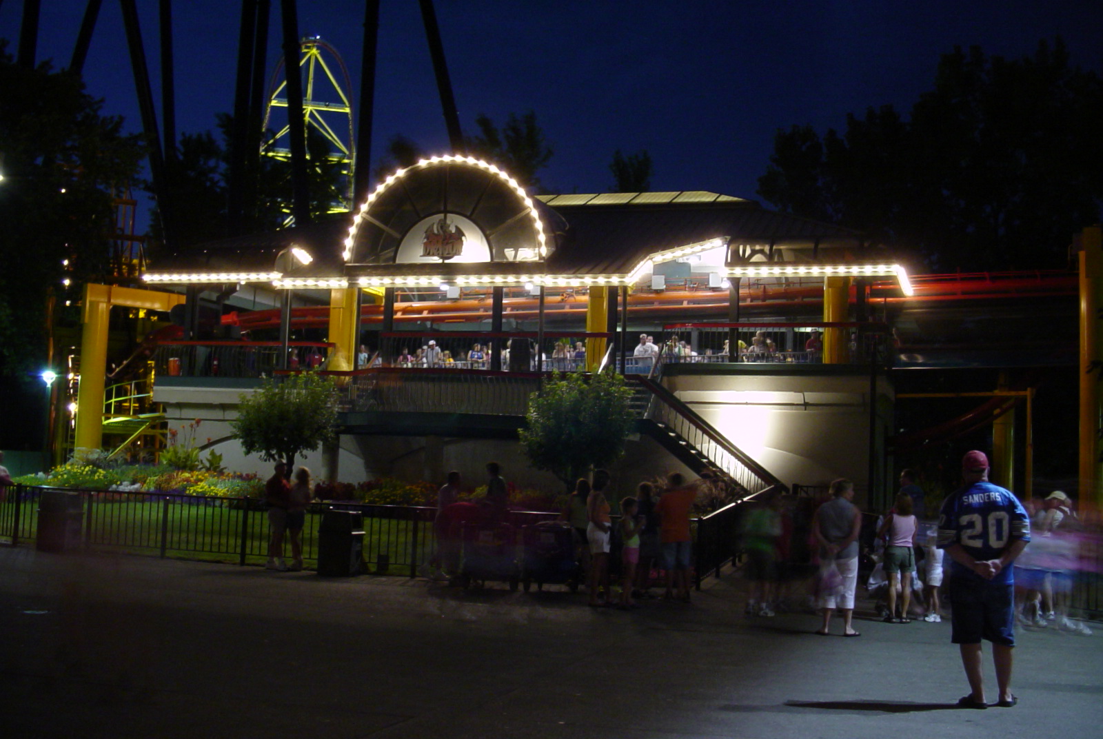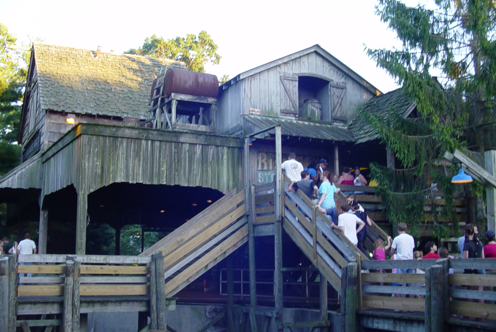 This ride opened on May 26, 2007 and it took the place of the White Water Landing log flume ride that operated here from 1982 to 2005 and was built by Arrow Development (later known as Arrow Dynamics). White Water Landing took the place of the original Shoot the Rapids log flume ride that operated here from 1967 to 1981, it was built by Cedar Point and Arrow Dynamics. The original White Water Landing station and queue (line) houses are still standing and presently being used as the queue house and gift shop for Maverick. I do believe the photo below is of the White Water Landing station when the ride was still there but I’m not 100% positive.