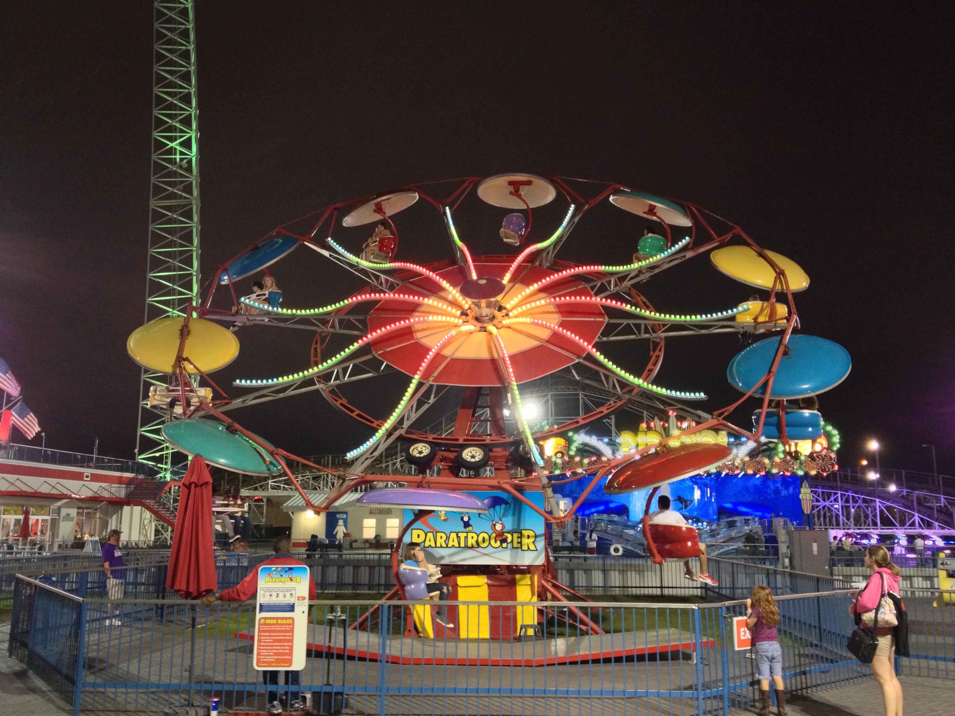 The Paratrooper is a classic ride from Chance Rides, It’s one of my favorite type of flat rides as it is quite fast. This one has an added bonus in that this one goes forward and backward. This ride was removed in 2019 and was replaced by Head Rush 360.