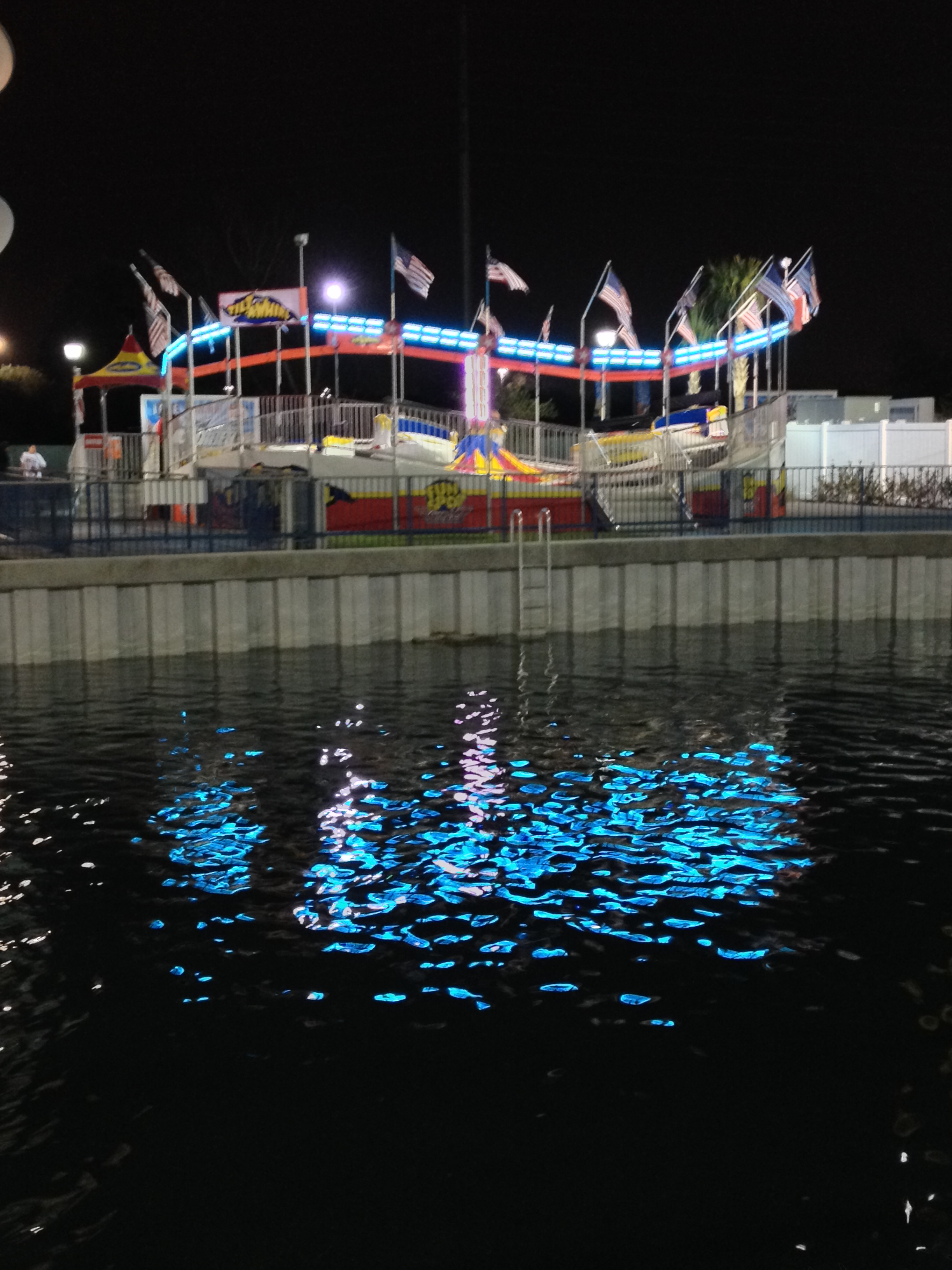 Here are some photos of White Lightning with it’s unique chaser lights outlining most of the track.