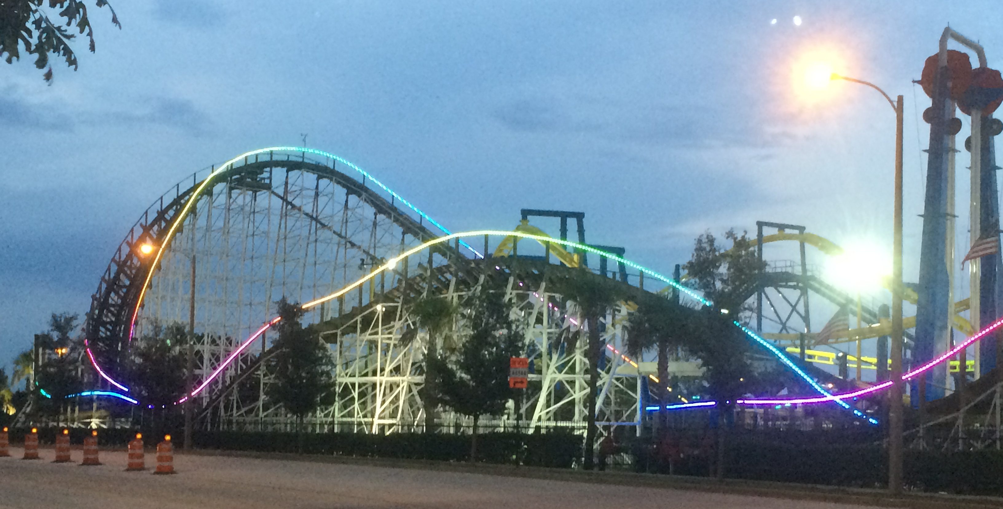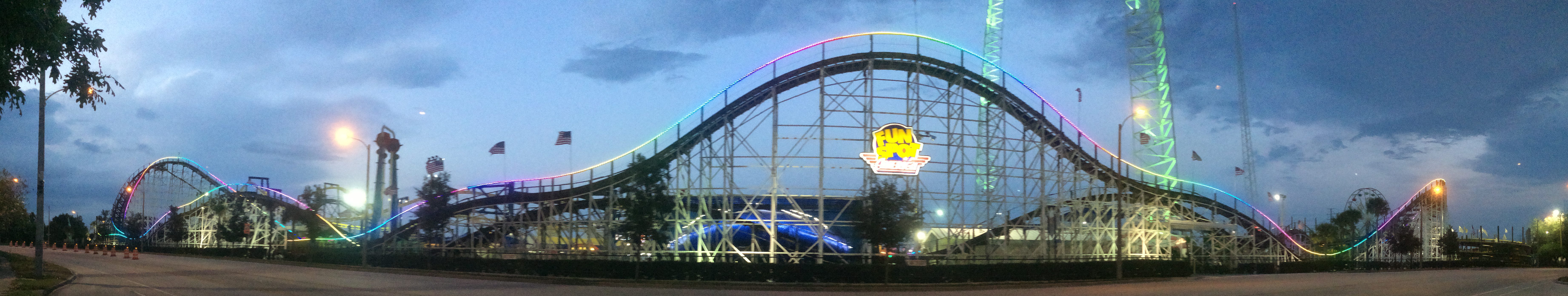 This ride is really quite fun and I recommend riding in the seats facing the White Lightning lift hill. Look up as the ride reaches its apex and you’ll see the rest of the park upside down for a brief second or two. The view is even more spectacular at night when all the rides are lite up. Here’s my off ride view from multiple angles.