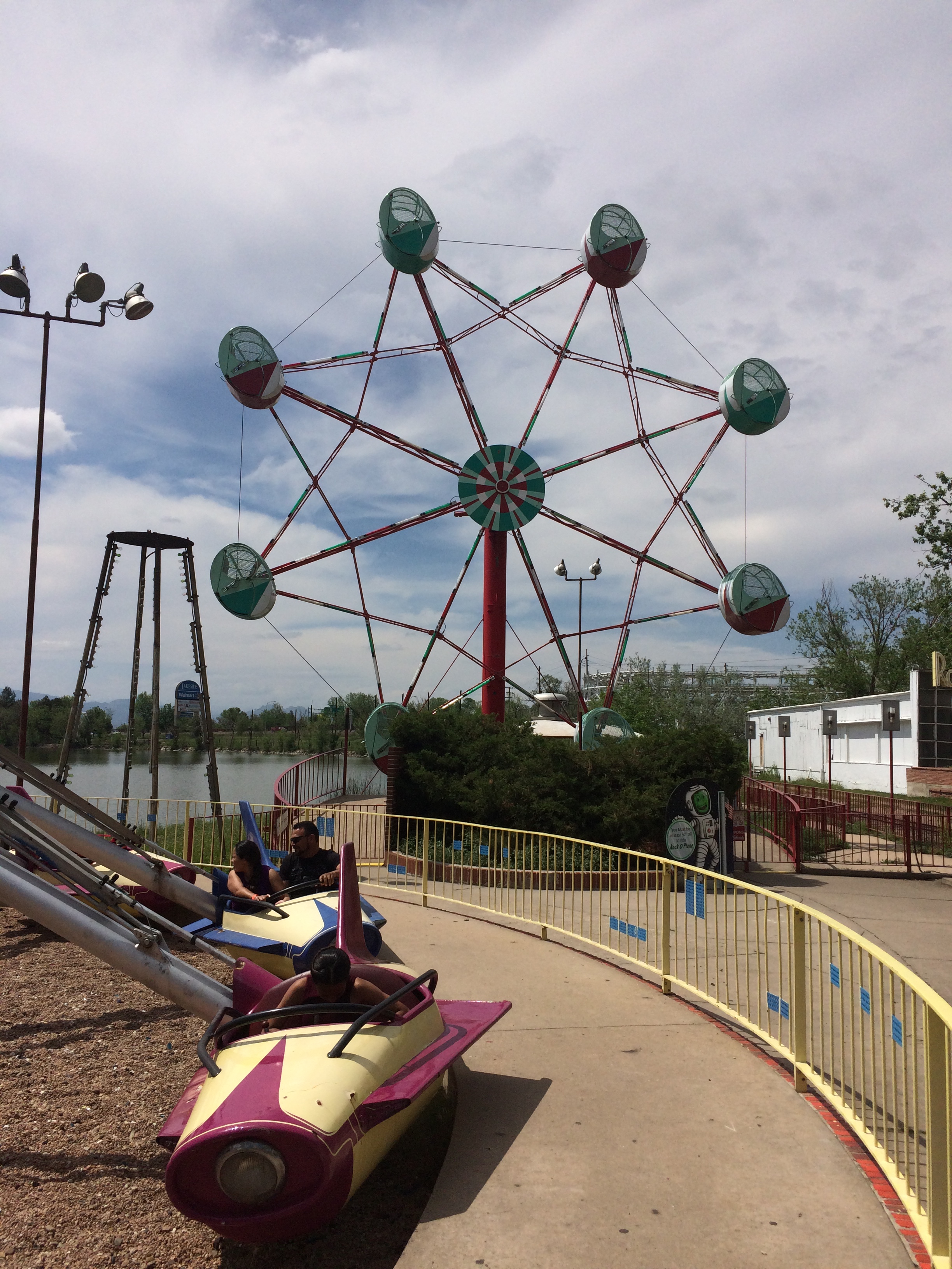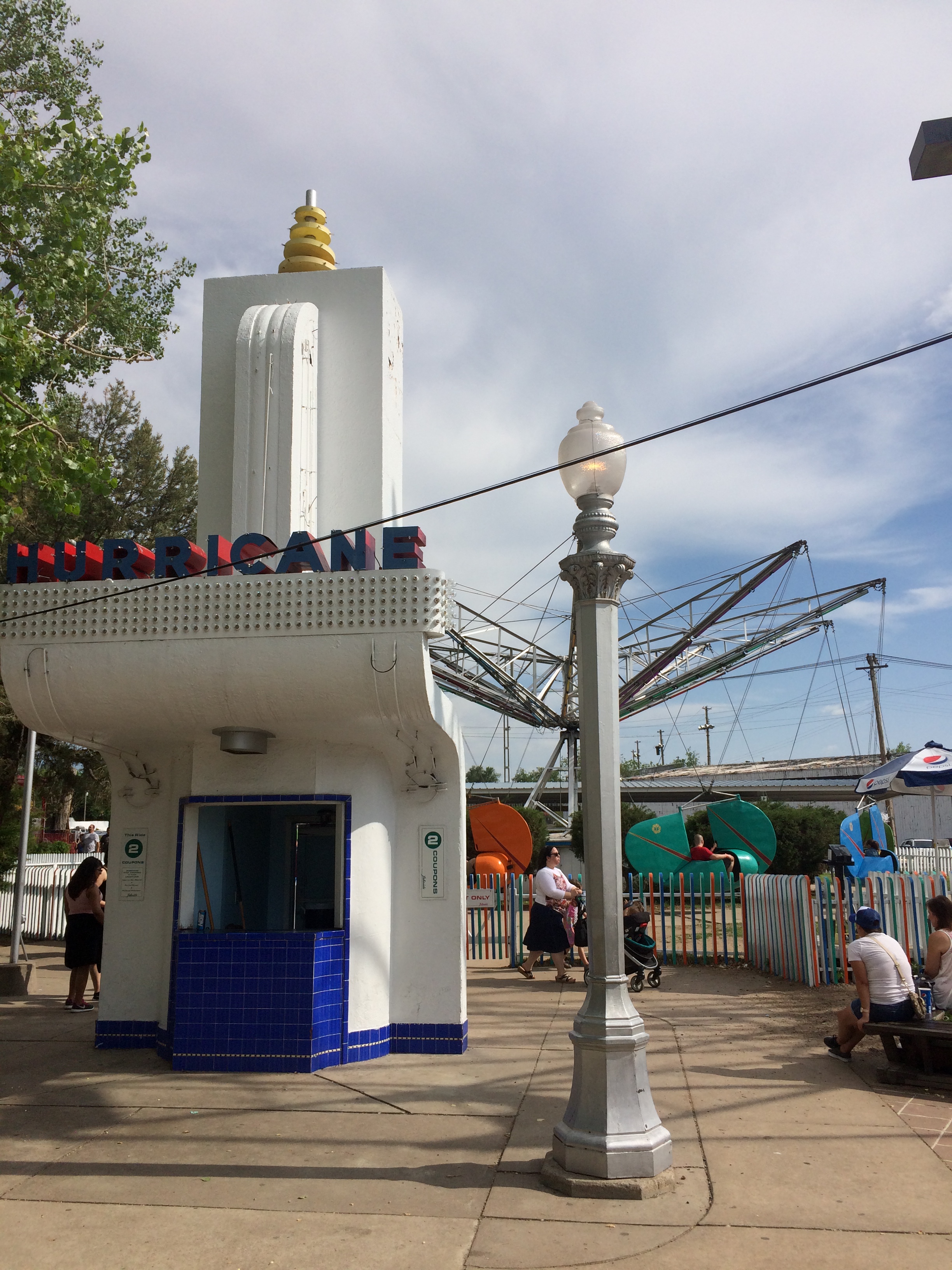 Unfortunately, the park went through some hard times as many parks did and one of those happened during the Temperance movement when the sale of alcohol was banned at a national level. Zang Brewery, from what I’ve heard was a better tasting alcohol than nearby Coors, chose to go into the ice cream business like Anheuser Busch did and Coors chose to go into the ceramics business to survive. The ice cream business may have been good for AB but it wasn’t good for Zang and they were forced to close up and sell their assets, including the park. Coors, on the other hand, survived and they still have and operate their ceramics division. A person by the name of Benjamin Krasner bought the park in the 1930’s and he hired Architect Richard L Crowther to renovate the park and give it the current Art Deco look it has today complete with lots of neon lighting. The Krasner family still owns the park to this very day.