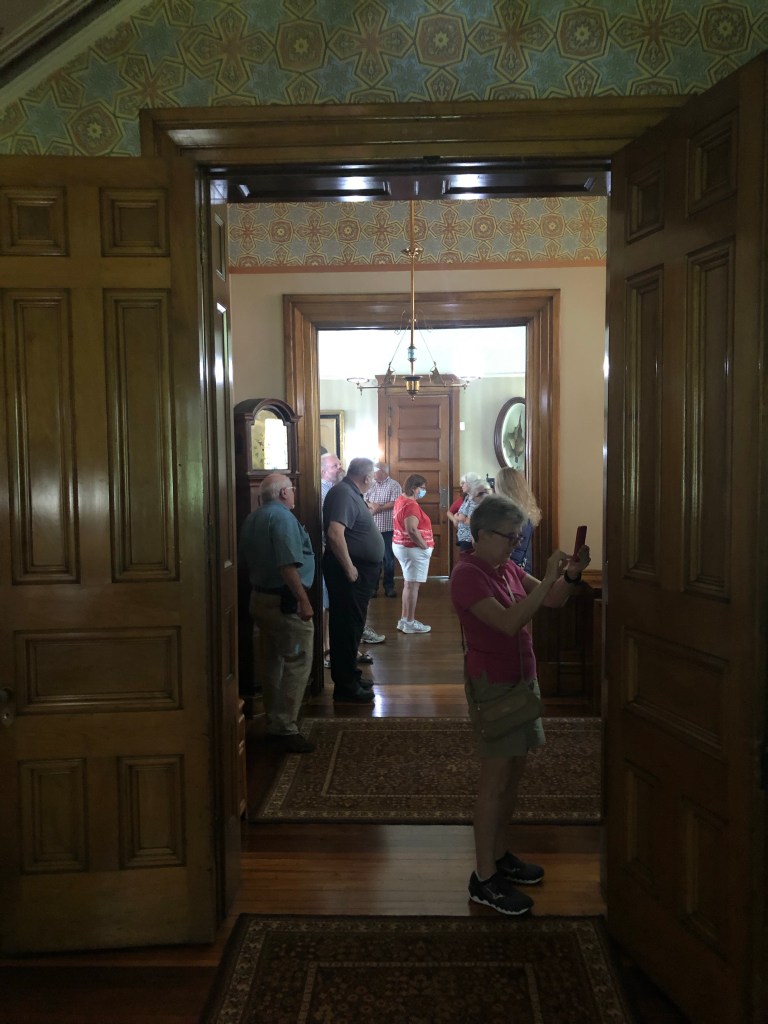 Next is the hallway which contains a beautiful Elk Antler chair and a beautiful hand carved butternut staircase that has 177 hand turned black walnut spindles. The hallway was originally Sardis’s sitting room. The lighting wasn’t that great so the phot of the cupola at the top of the stairwell is the only one I have.