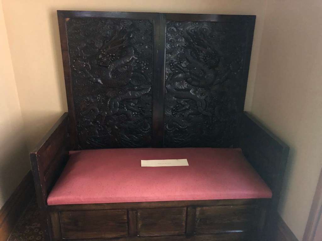 Now we head up to the second floor and on the landing is a beautifully carved love seat.