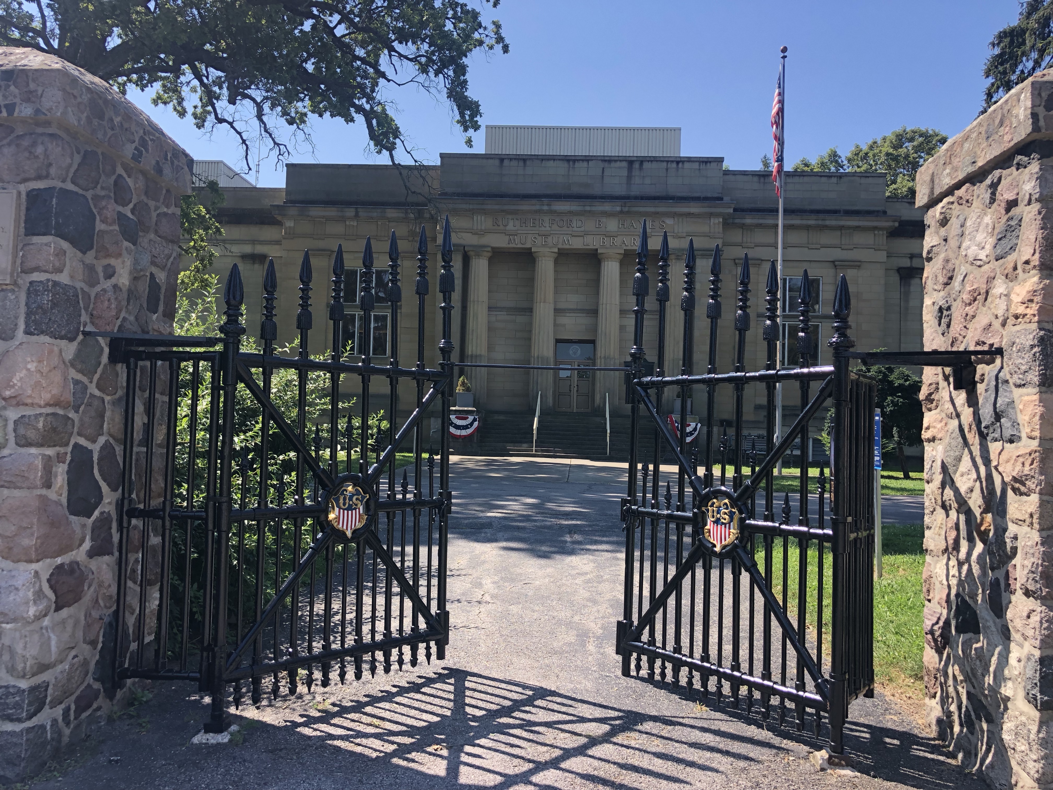 First off, we will visit the Presidential Library and Museum which is pretty impressive. The photo above is of the library and museum through the gates which used to be at the White House. Those gates were given to the Presidential Library and Museum by congress when they were removed so they could install wider gates so the firetrucks could fit through them. There are four such gates on property and all of them are being used as actual gates. In the original entrance, you will see a bust of President Hayes and one of his many quotes, “He serves his party best who serves his country best.”
