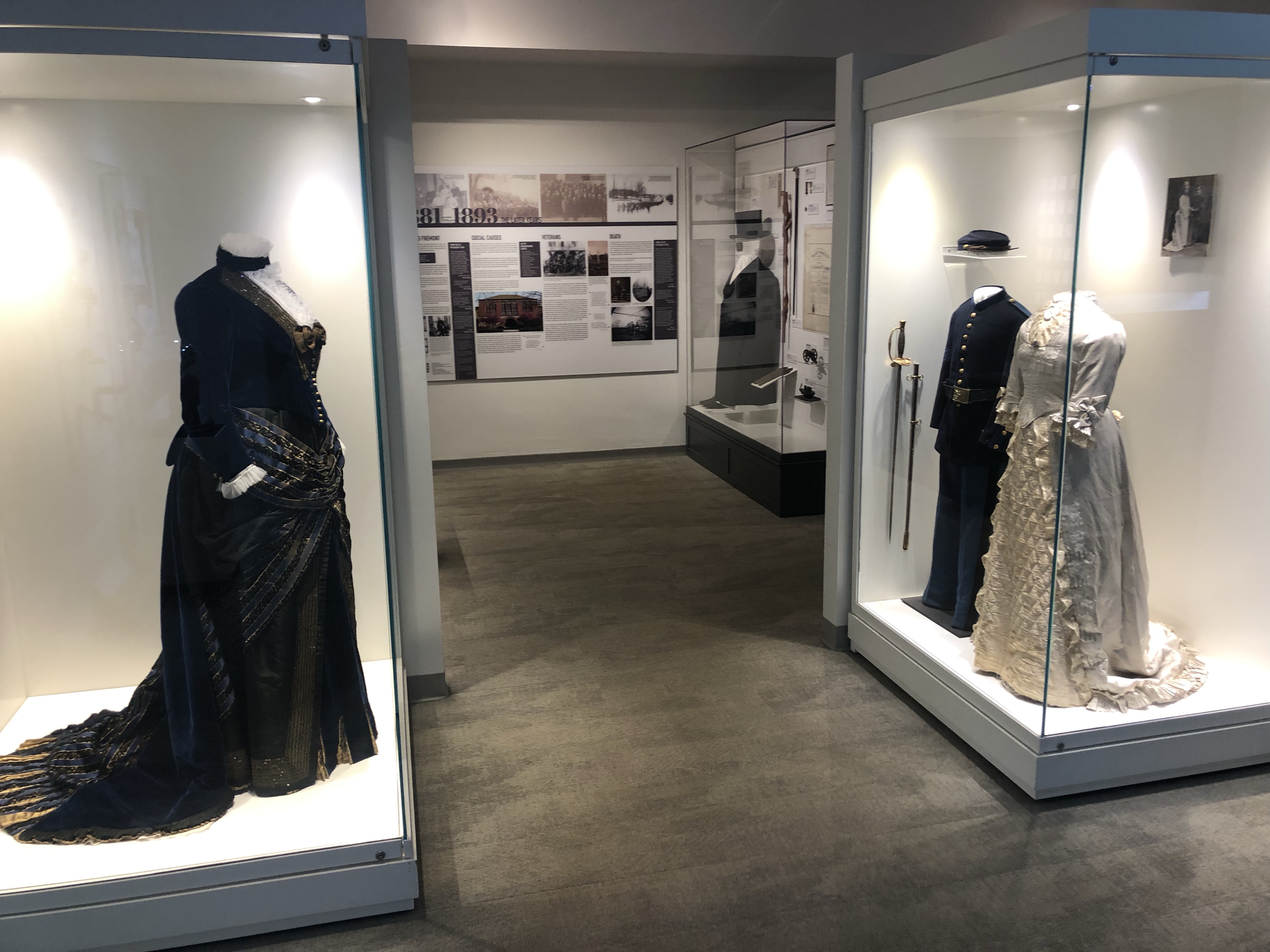 In another room, there are family dresses and kids costumes. The popular kids costumes of the time were a Union uniform for the boys and dresses for the girls.