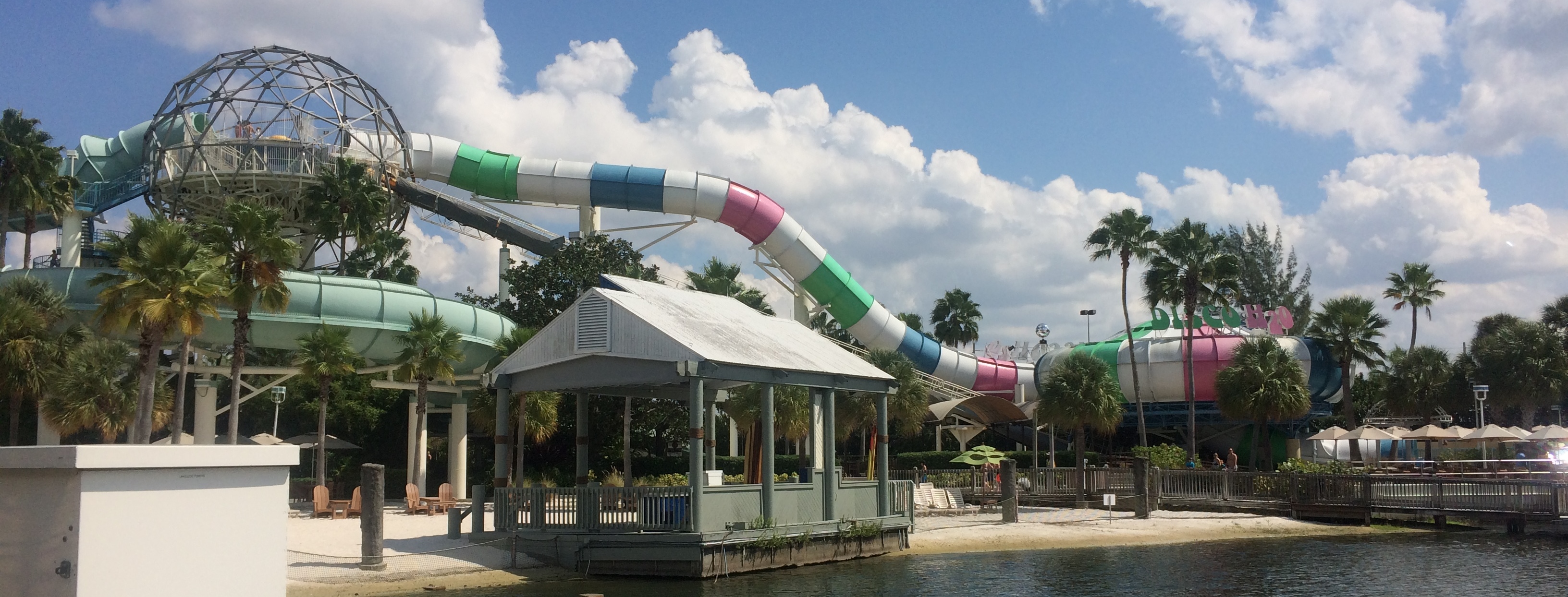 Well, it’s time to hit the slides again after a nice dip in the wave pool and some time in the sun. Now we’ll head past the Aqua Drag Racer, Lazy River, and the Storm picnic pavilions towards the northwestern corner of the park.
